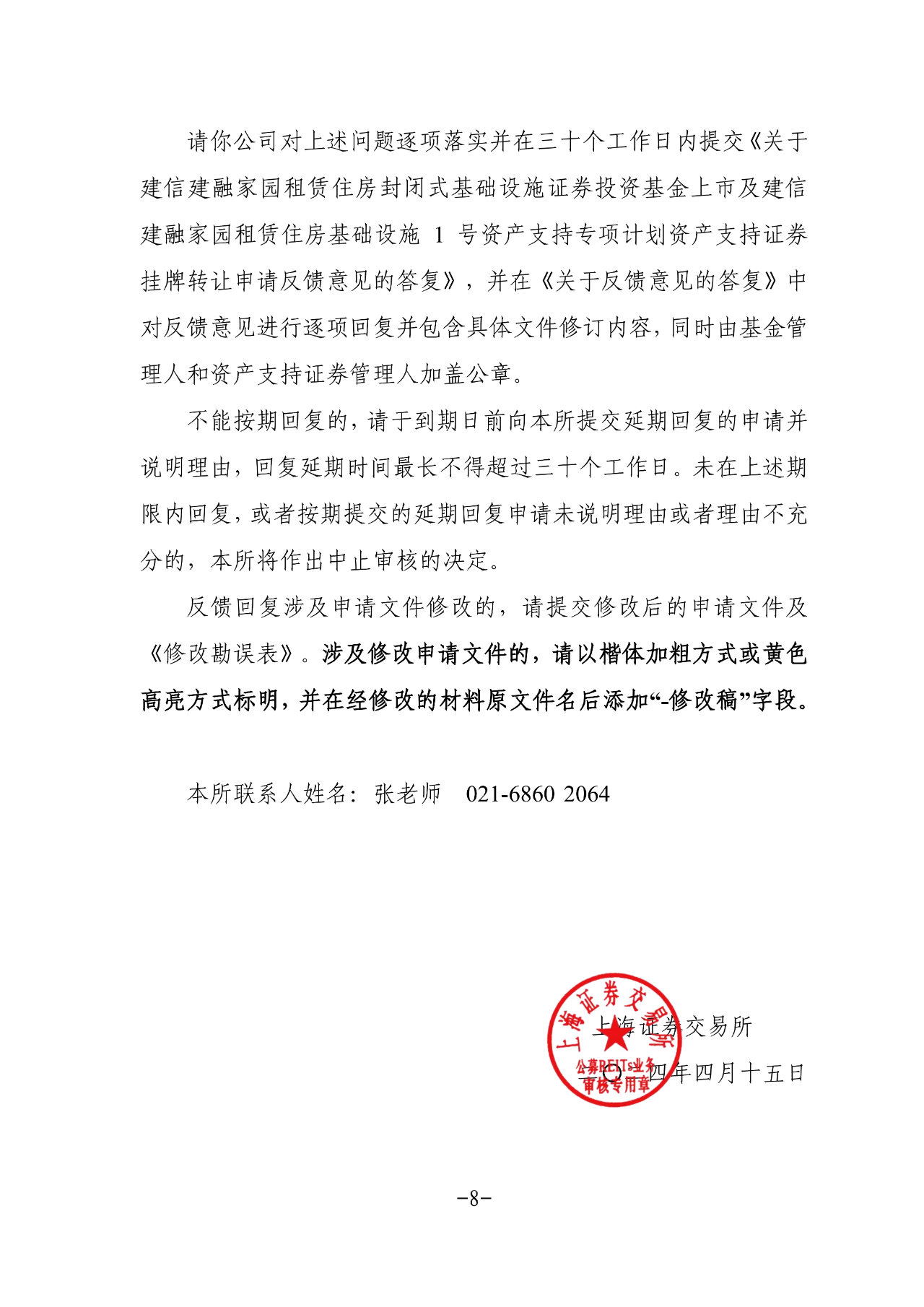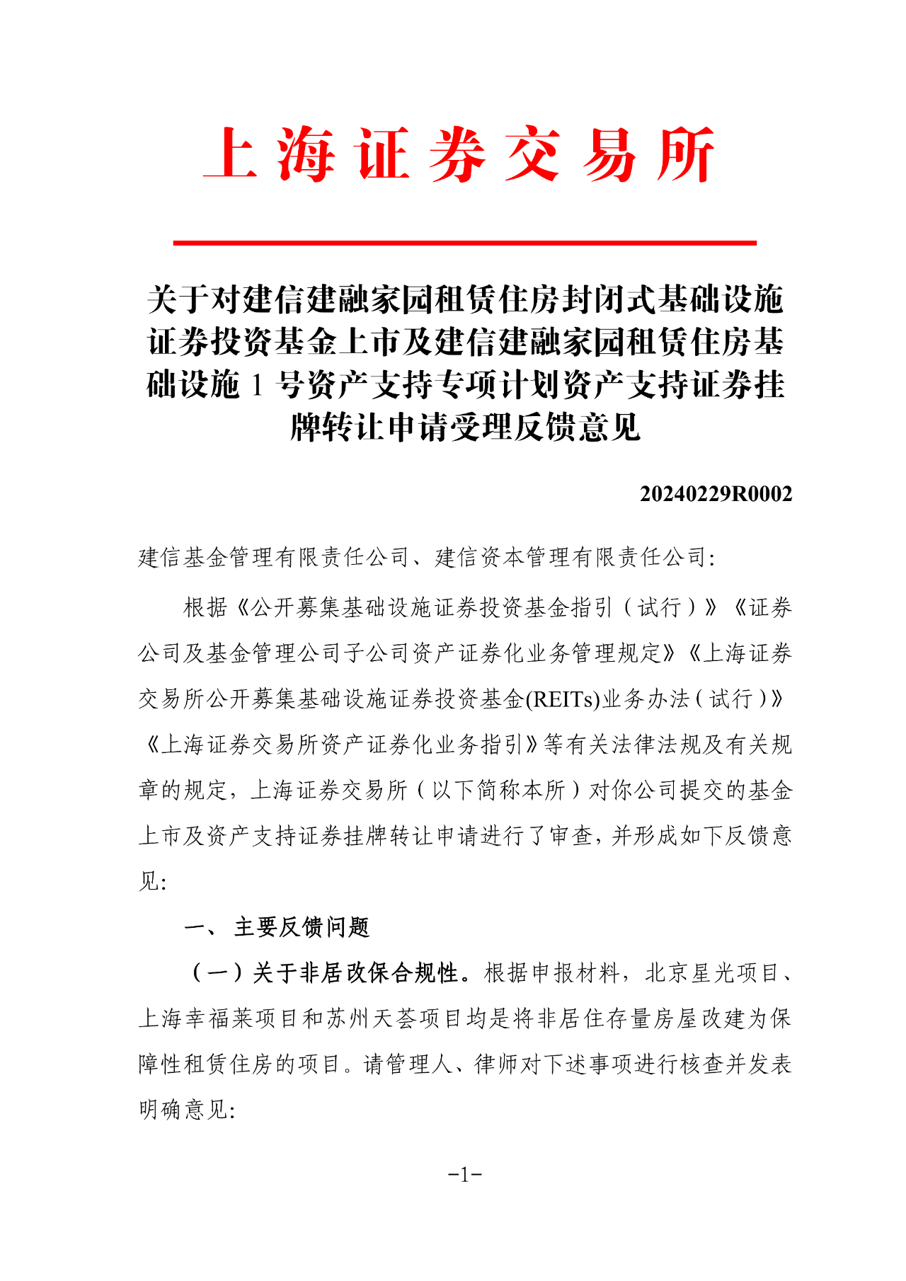 建信建融家园4亿元租赁住房公募REITs更新至“已反馈”