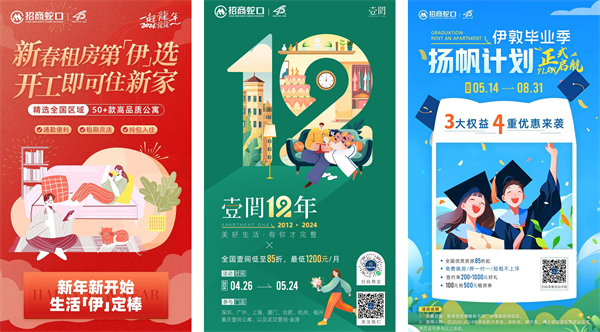 招商伊敦公寓全年持续推出多场品牌活动及租房优惠福利,涵盖春节、夏季、中秋国庆、双11等全年节点,产生千万级活动曝光,月月有折扣让利,节日节点话有题策划,让美好旅居持续发生。其中,暖春租房优惠、壹间周年庆品牌活动、毕业季租房权益等等活动均已连续推广实行多年,形成良好的品牌口碑和消费习惯,提升品牌知名度及客户粘性。