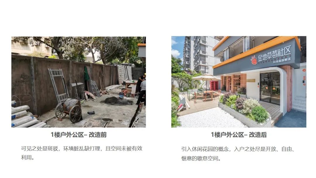 轻资产案例——金地草莓社区科技园店,原是中钢集团持有的老旧宿舍,通过金地草莓社区的介入,全面进行市场调研,完成产品设计改造,并承接后端运营,实现运营形象、安全管理与盈利能力大幅提升,在全流程中为业主提供了有效的资产增值建议。