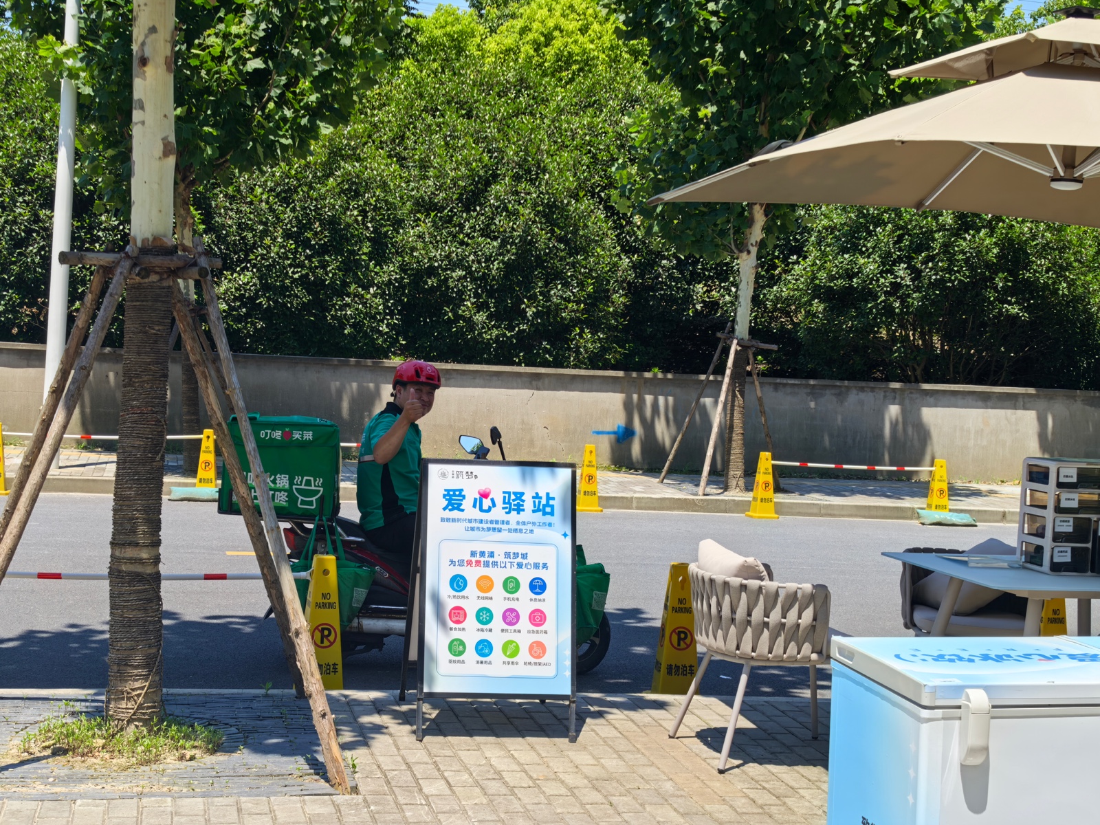 如何更好地让善意循环,让正能量流动起来?今年,新黄浦·筑梦城社区团队细心关注和了解广大劳动者的需求后,在去年夏天提供爱心冰饮的基础上,全面升级了社区临街设立的「爱心驿站」,诚邀新时代城市建设者管理者,快递员、外卖骑手、环卫工人、维修师傅、交警同志等全体户外工作者进站歇脚减压。