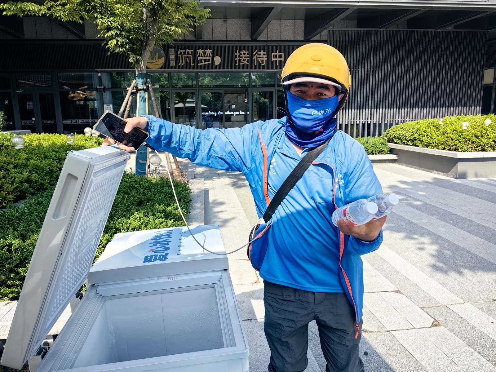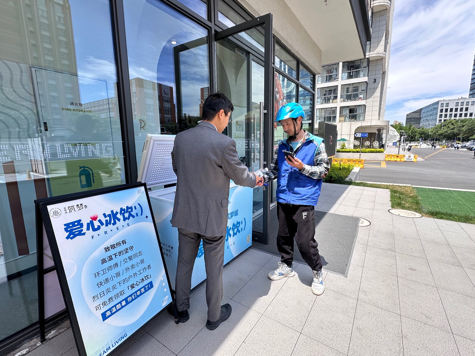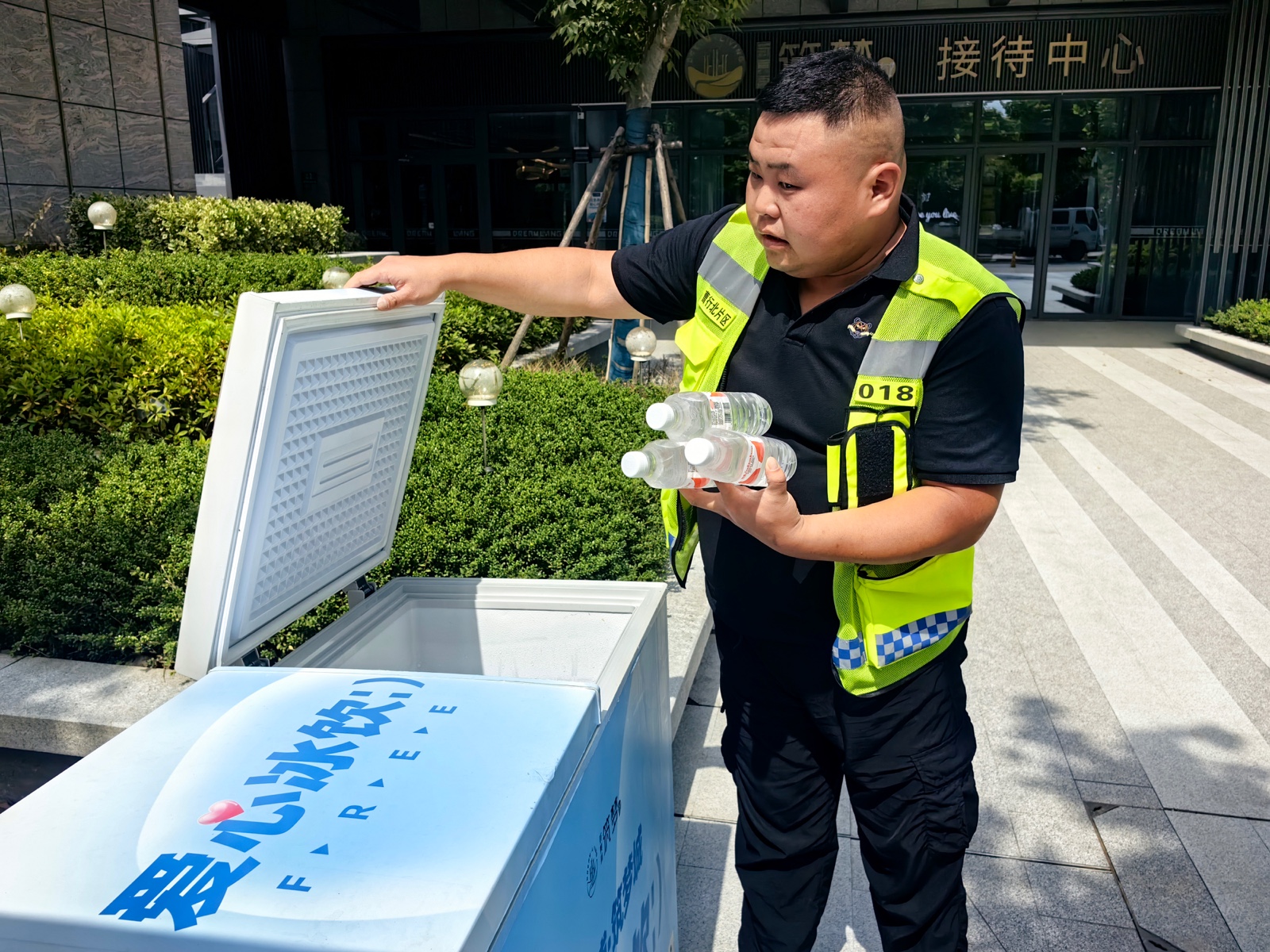 夏日期间,两大社区将爱心冰柜和爱心“百宝箱”放置在接待中心入口处,欢迎全体户外工作者免费取用!