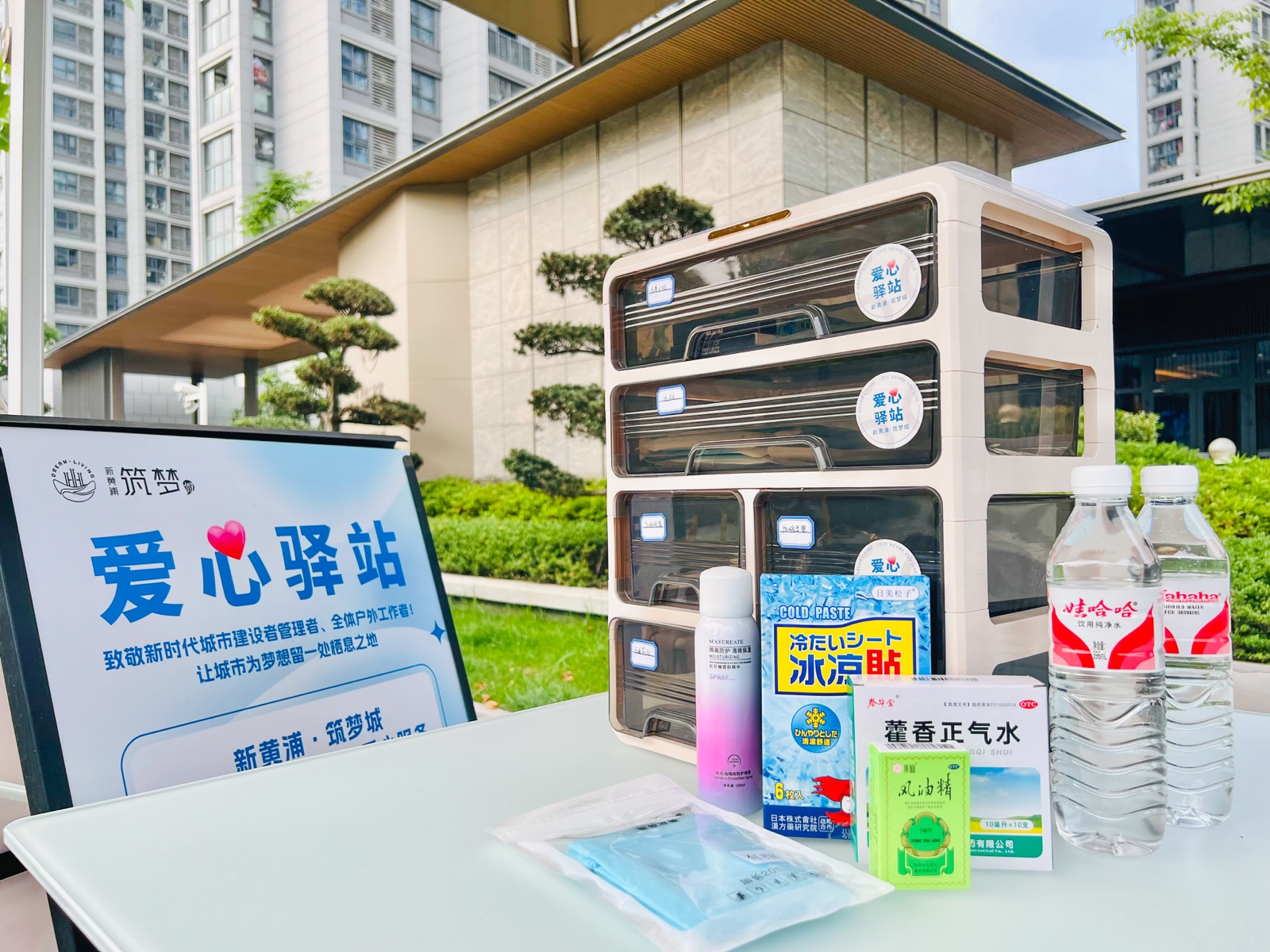 新黄浦·筑梦城两大社区「爱心驿站」不仅提供冷热饮用水,更新增了无线网络、手机充电、休息纳凉、餐食加热、便民工具箱和应急医药箱等一系列暖心服务,还可免费取用藿香正气水、风油精、蚊不叮、防晒喷雾、降温冰贴等爱心用品。