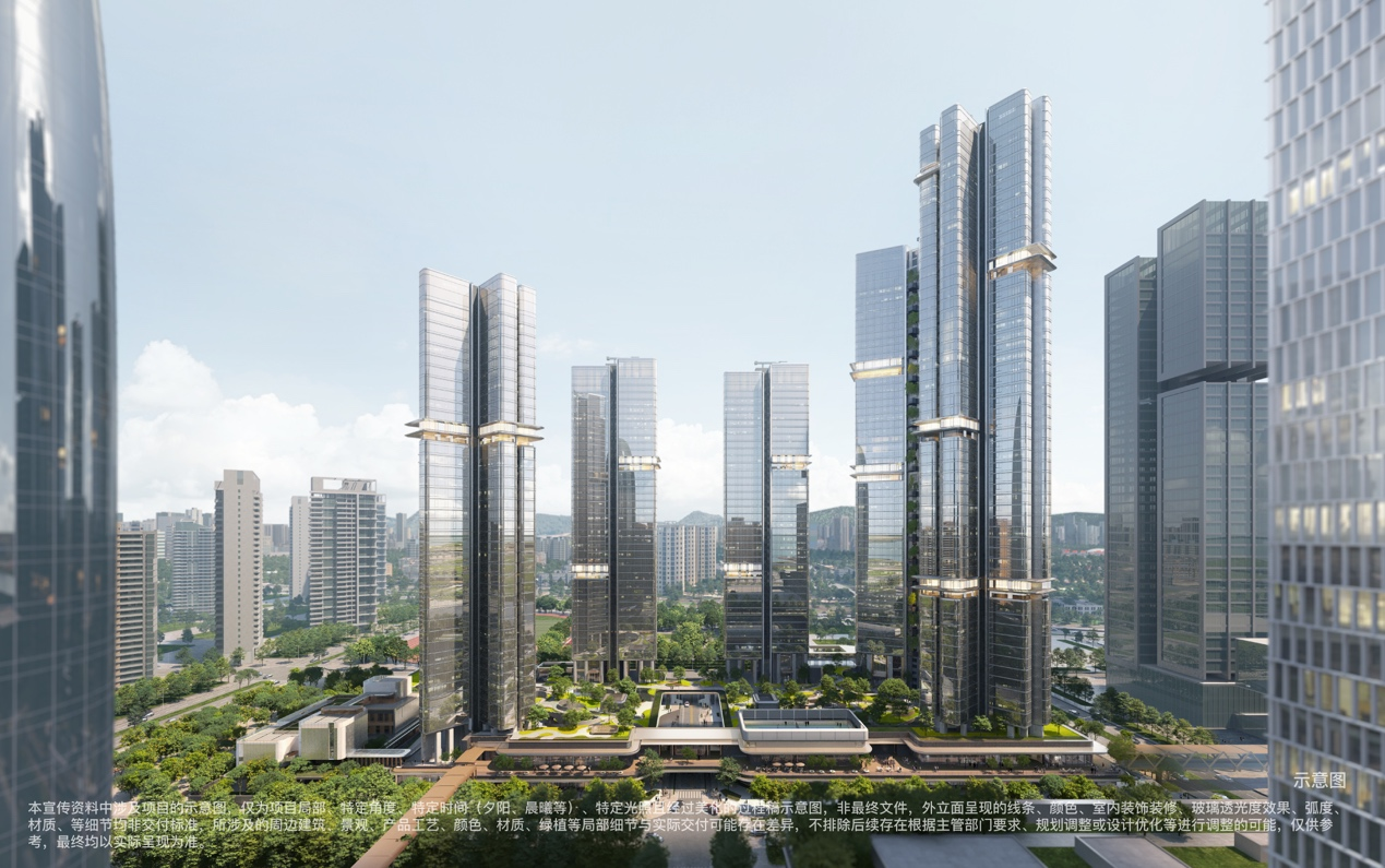 深湾玖序花园自持住宅项目位于深圳湾超级总部基地核心区域西北角,北侧可望向侨城国家湿地公园、世界之窗,亦可远眺塘朗山公园;西南侧更可穿过视觉通廊,尽揽深圳湾海景。30分钟通勤距离覆盖深圳湾超级总部基地、后海中心区总部基地、福田中心区总部基地,区位优势得天独厚。