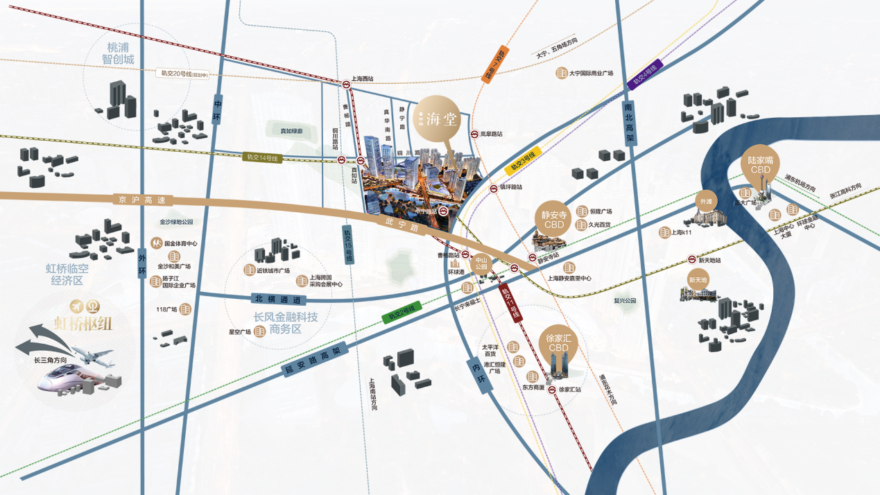 项目位于上海普陀区真如副中心,是中海真如境商业综合体项目的重要组成部分,中海海堂国际服务公寓与30万㎡国际甲级写字楼,22万㎡环宇城MAX购物中心、中海剧院、山姆会员店城市旗舰店等多元生态共同构筑了上海城市更新的伟大一平方公里。作为全域商业生态链条中的居住载体,海堂国际服务公寓已成为普陀产业升级高端人才引进、静安商务精英的集中选择。