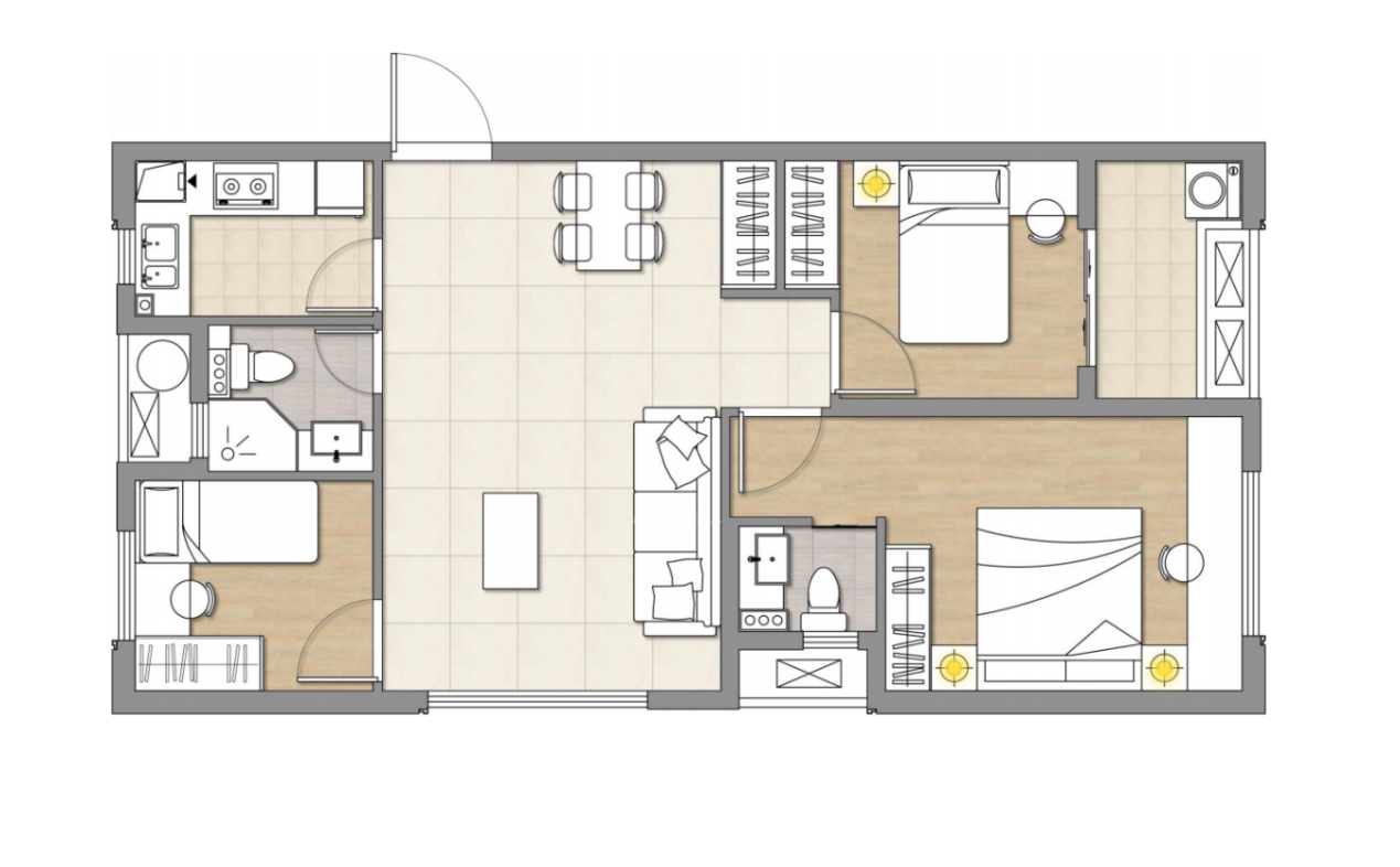 3.C户型:建筑面积约69㎡,两室一厅一厨一卫