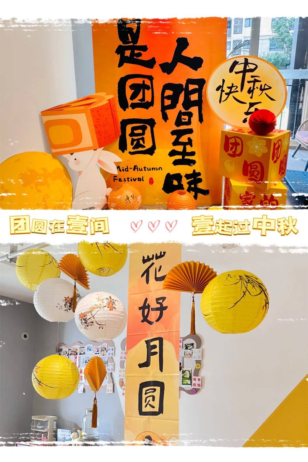 “团圆在壹间,壹起过中秋”,翘首以盼的中秋佳节,岂止一种欢度方式?在壹间·宝山工业园,传统游园玩艺与新颖DIY环节交织成温馨欢乐的“中秋游园会”,现场橙黄色的灯笼、挂饰相映成趣,月亮、兔子造型的陈设萌气可爱,渲染出热烈别致的中秋氛围。
