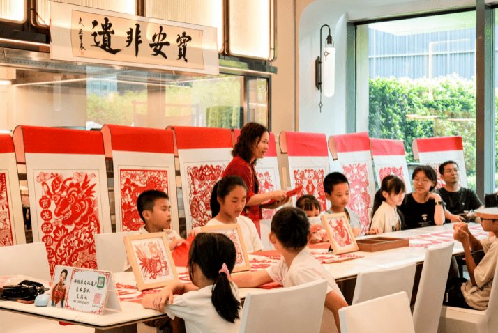 本次活动以“以剪代笔,纸上生花”为主题,特别邀请到宝安区非遗“新桥艺术剪纸”第四代传承人吴海凤女士。酒店协同宝安团青委共邀请到辖区60余名困境青少年家庭参与,共同体验剪纸非遗艺术。