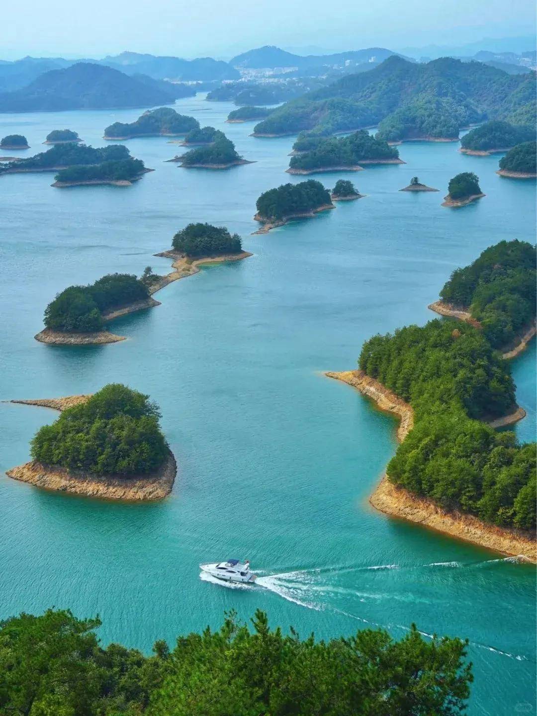 看湖水碧绿清澄,岛屿星罗棋布