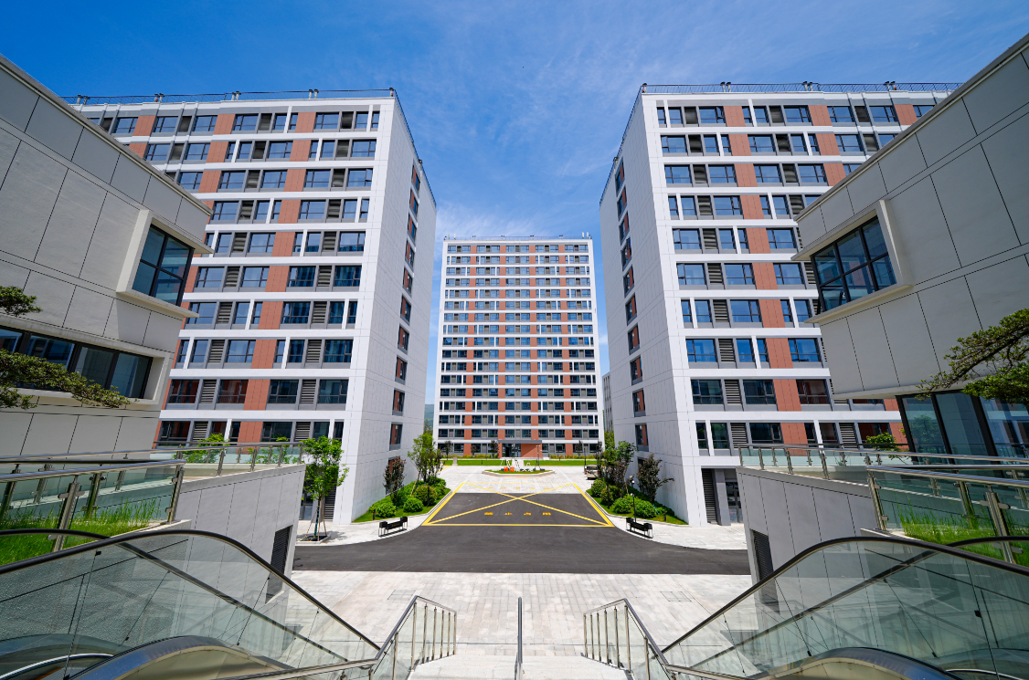 雅观新天地由临安区科投集团投资建设,由1490套保障性租赁住房、1万余方商业综合体、酒店和办公配套组成,是一个集“产业+商业+居住”为一体的综合体项目。