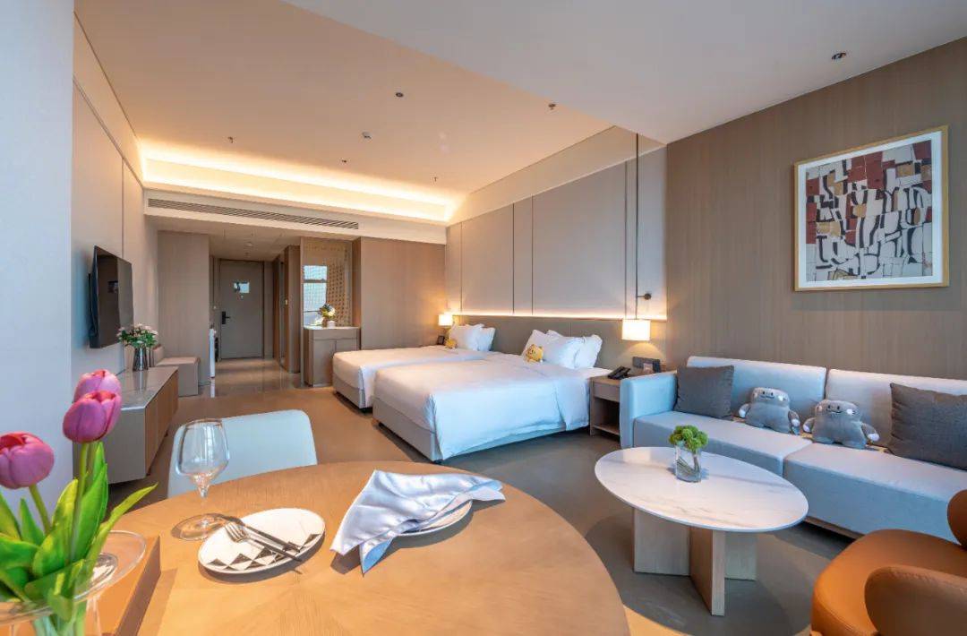 项目设有江景大床房、双床房以及三大主题亲子房共345间,配有百米江景网红餐厅、270度景观儿童阅览室、健身瑜伽房、多功能会议厅等功能区,尽享便利与舒适。