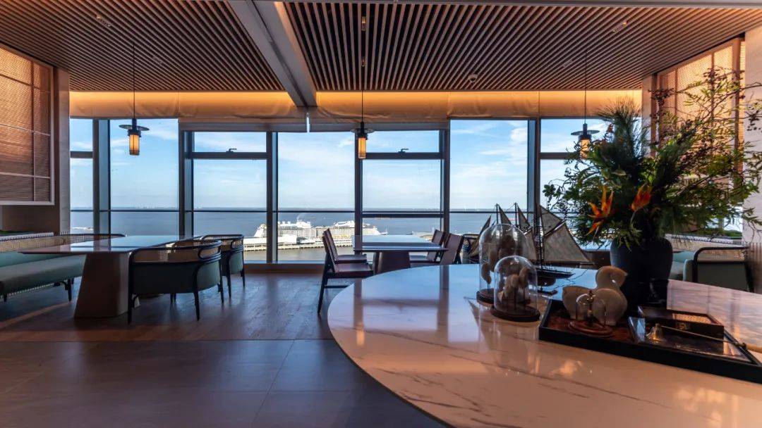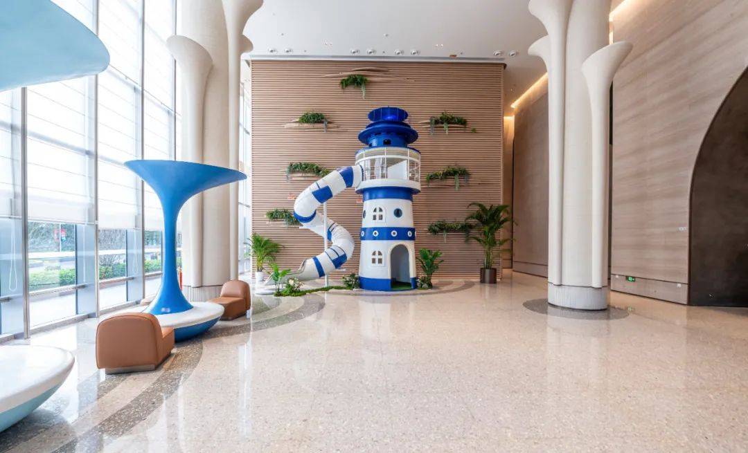 整体空间以海岛奇境为设计理念,结合了邮轮母港的地理优势,首层大堂的大型灯塔取自吴淞口灯塔的灵感和元素,并将红树林、海底微光、会呼吸的海洋巧妙融合。