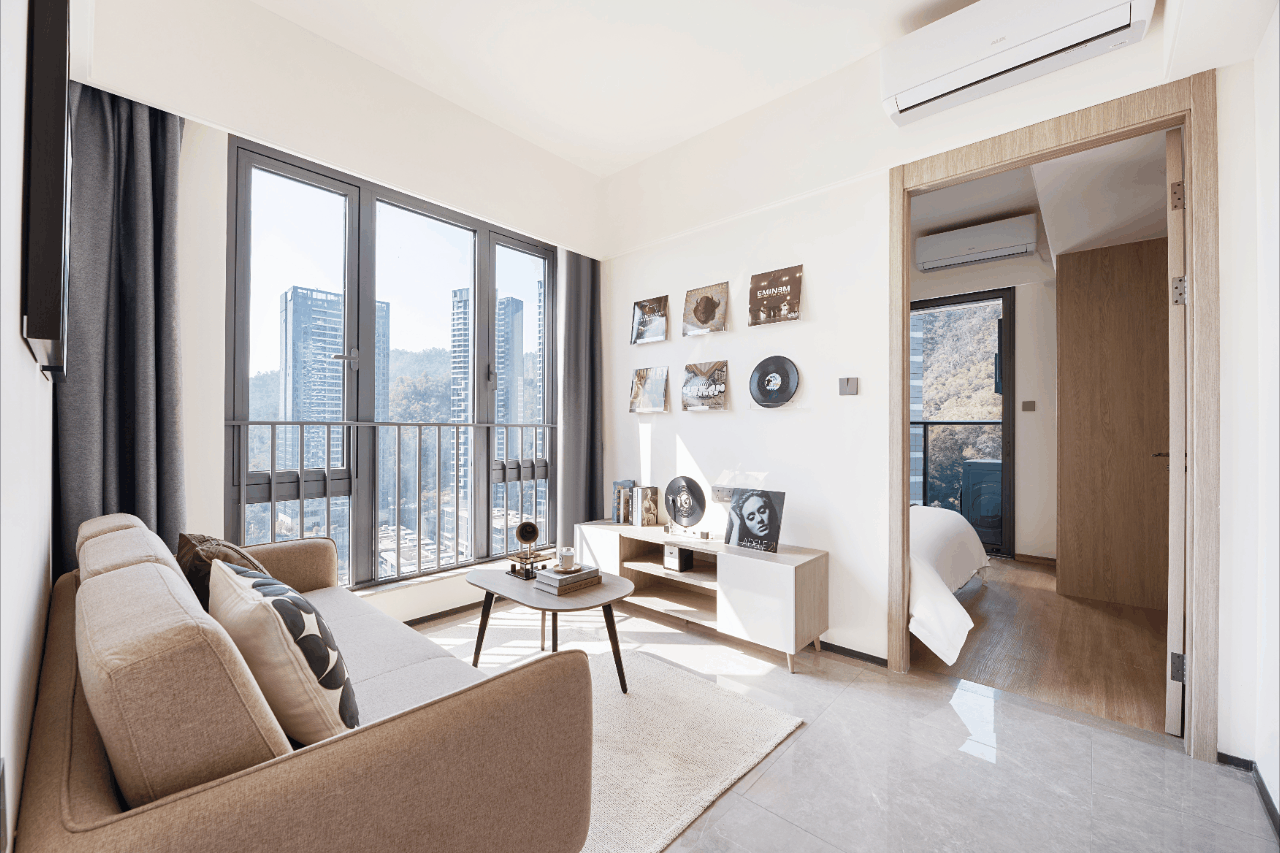 公寓设计以全明设计和舒适主义为基础,注重空间利用合理性的同时,精心配备了全屋品牌家具家电,方正高实用的户型设计,处处考究的高收纳空间细节,为惬意生活铺就专属主场。房内创新配置智能门锁、可视对讲、无线网络覆盖和官方APP一键缴费报修等智能化家居应用,让居住体验便捷高效,每一天都是科技与关怀交织的舒适享受。