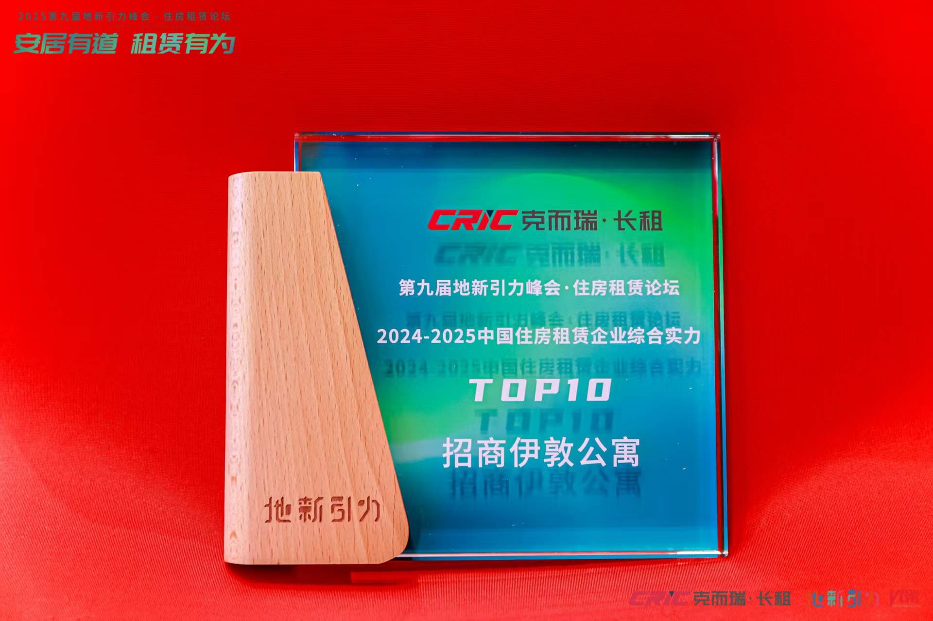 荣耀时刻丨招商蛇口招商伊敦荣获克而瑞“2024-2025中国住房租赁企业综合实力TOP 10”