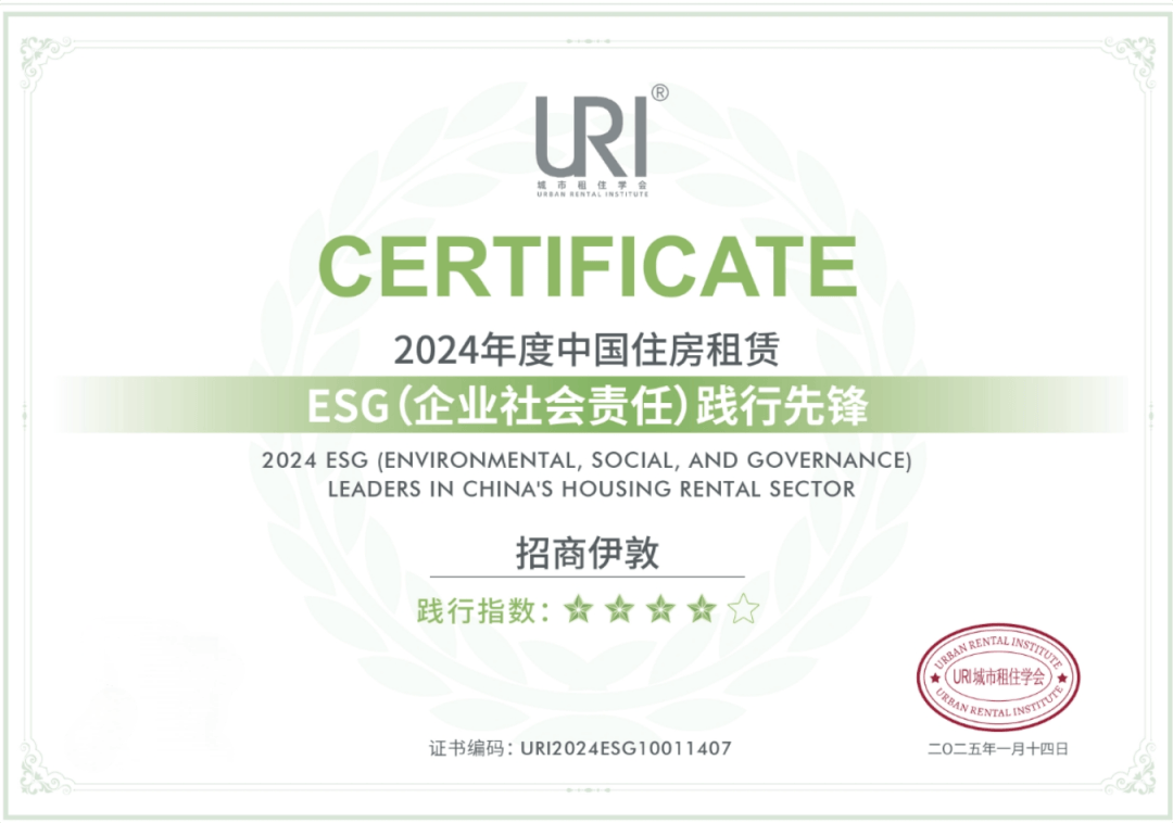 2025年5月21日,由中国房地产协会指导,克而瑞集团、地新引力主办的“第九届地新引力峰会·住房租赁论坛” 颁奖典礼在上海举办,招商蛇口招商伊敦喜获“2024-2025中国住房租赁企业综合实力TOP10”殊荣 。