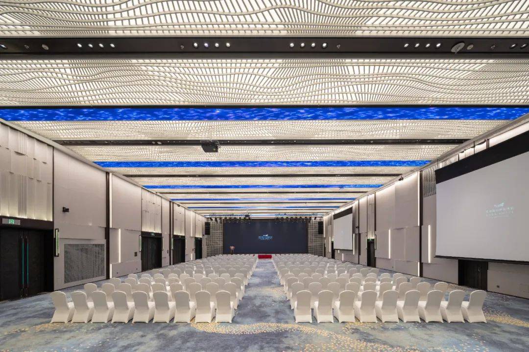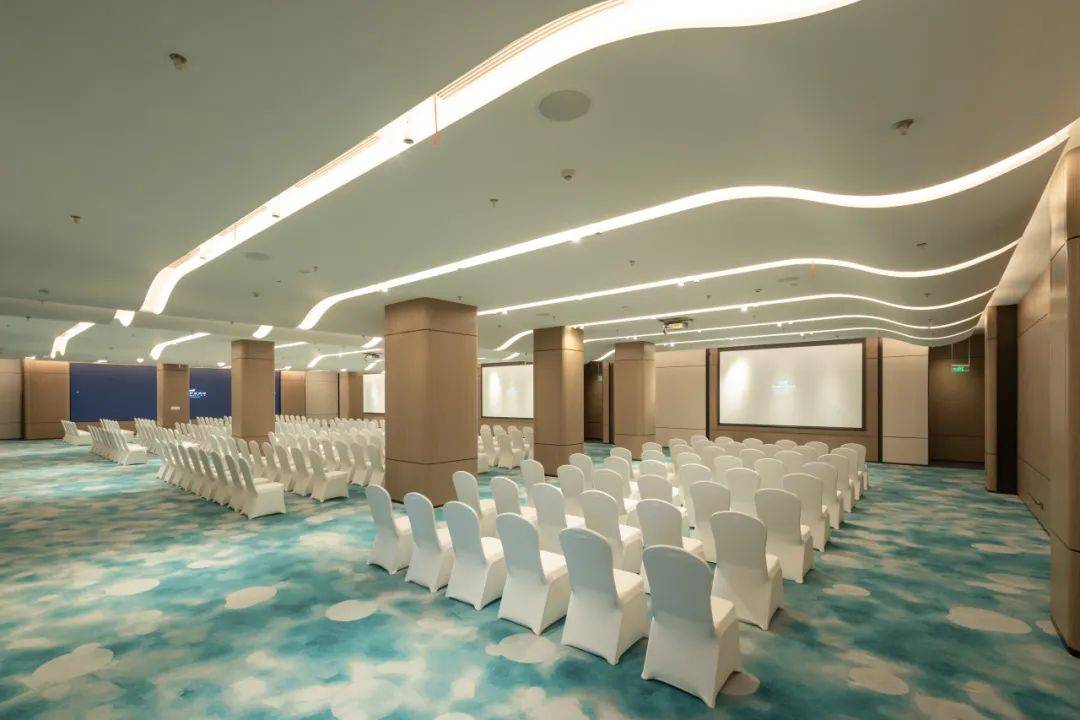 酒店打造建面约2,400㎡灵动会议空间,包含8个高端宴会场所及1个虚拟演播厅,设计典雅大方,配备先进视听设施,如虚拟演播厅,内置调音台、调光台、录制提词器、专业拍摄摄像机等设备;更有80㎡超清4K LED主屏的伊敦宴会厅,以全场景适配,满足贵宾接待、婚礼庆典、商务会议、产品发布、培训讲座等需求。