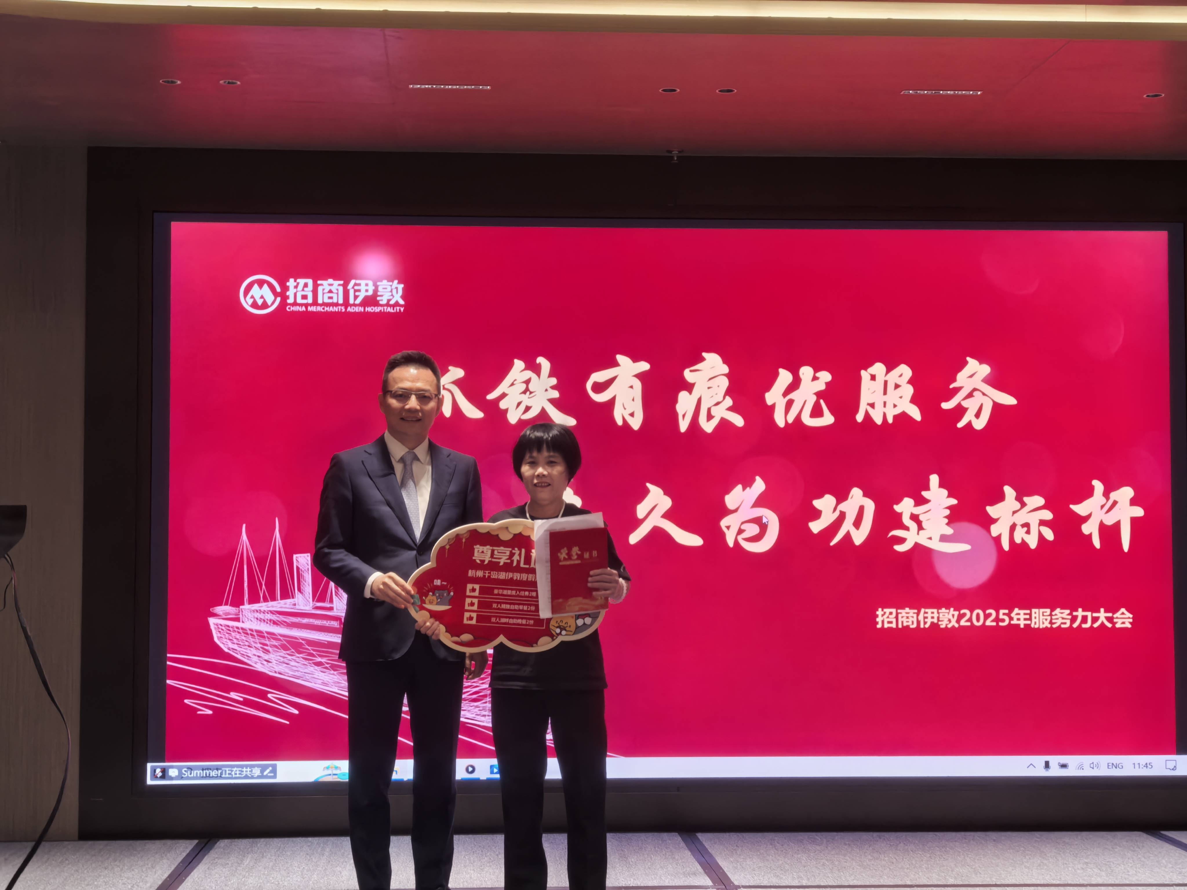招商蛇口招商伊敦总经理李杰总为其颁发“服务楷模”证书与专属礼遇。