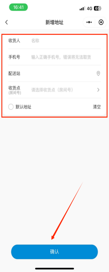 第三步:输入姓名、房号等信息,核对配送站(所在美寓)点击“确认”即可绑定成功