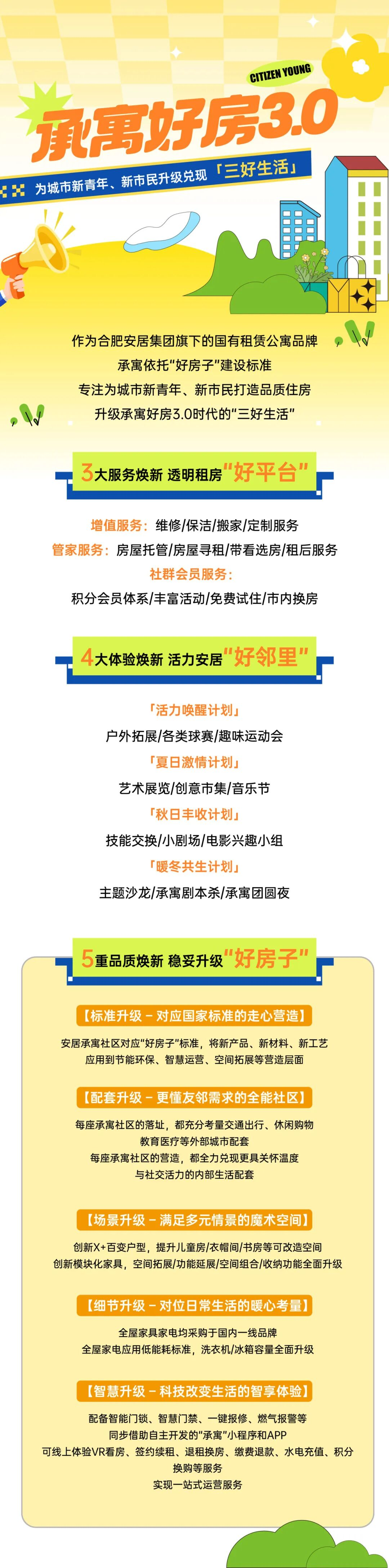 长期以来,承寓相继推出毕业生鸿鹄计划、广玉兰人才驿站等惠租福利政策上线,并在近期正式开启“承寓好房3.0”品质升级计划,以行动践行理想使命。未来,承寓将持续深化“品质租住+人才服务”的理念融合,从品质房源营造到服务体验升级多维度发力,做青年人才在肥安居的“温暖港湾”。