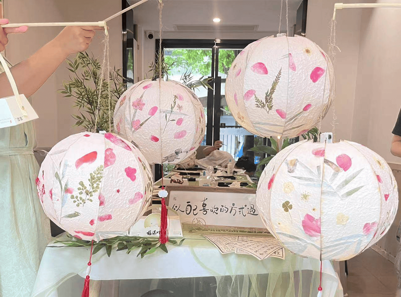 活动采用传统花草纸艺融入花灯制作,营造更有诗意的中秋氛围