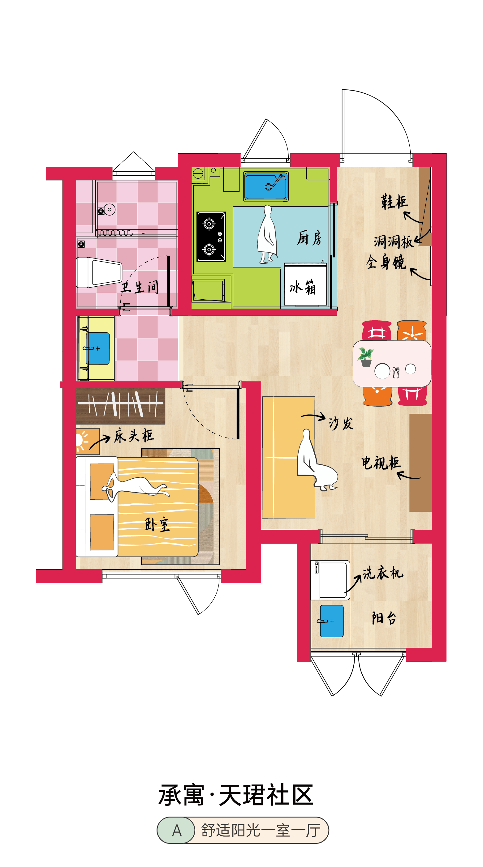 承寓·天珺社区户型设计超懂年轻人,建面约50㎡一室一厅太适合独居党!客厅能放小餐桌,卧室采光足,下班回家窝在沙发追剧,幸福感直接拉满。