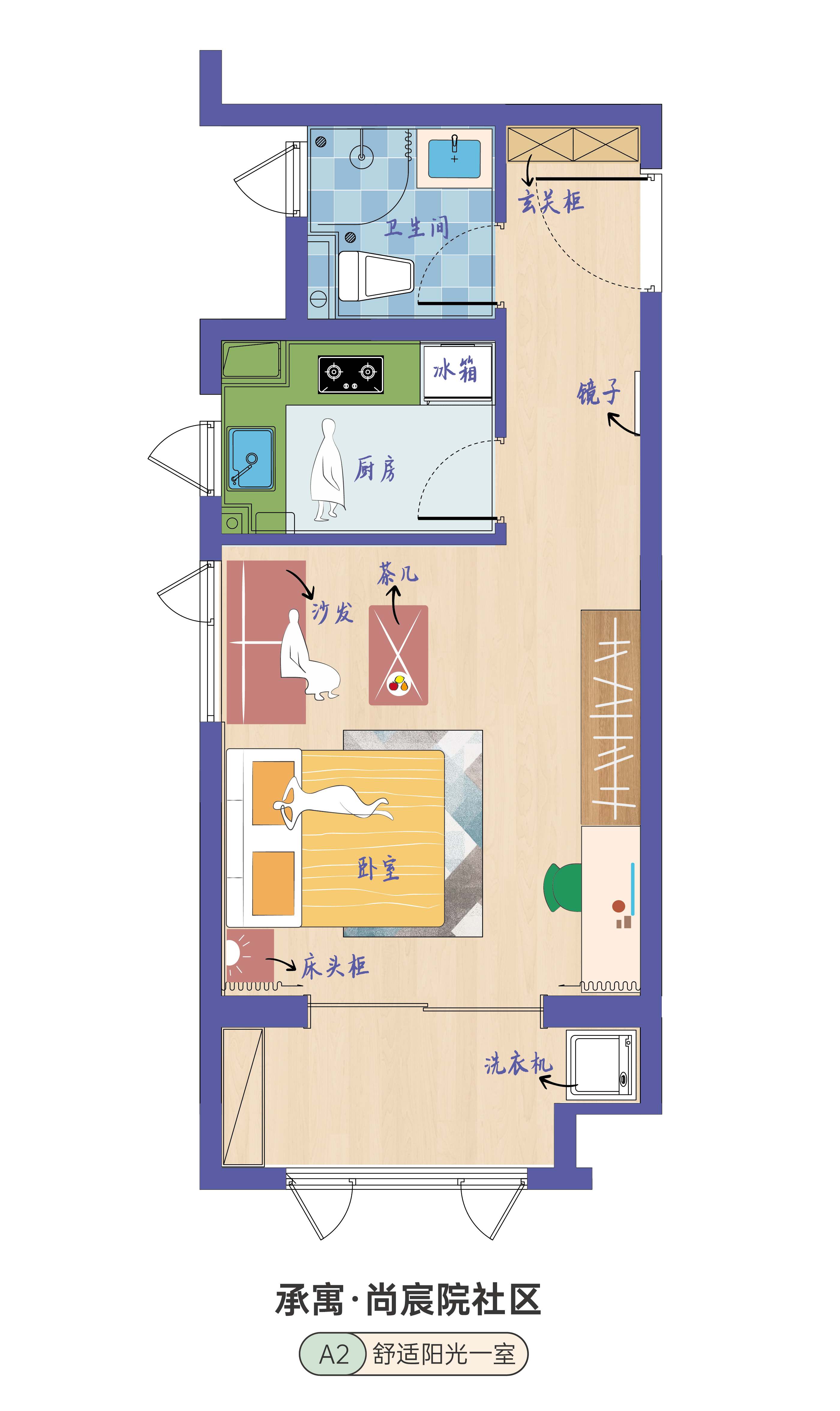 最受情侣们青睐的建面约51㎡一室一厅甜蜜天地,朝南全明格局,卧室直通阳台,品牌家电配齐,拎包就能开启“二人世界”。