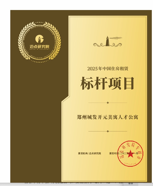 本次盛典上,郑州城发开元美寓、郑州城发鼎盛美寓两大人才公寓项目获评“2025年中国住房租赁标杆项目”。