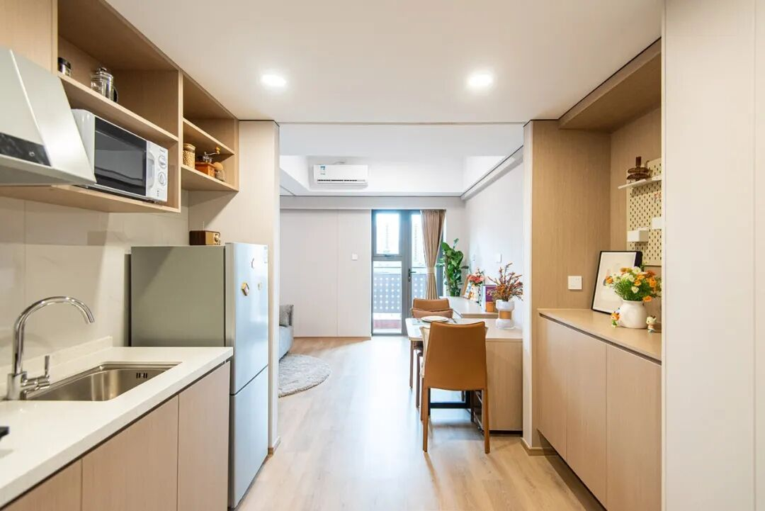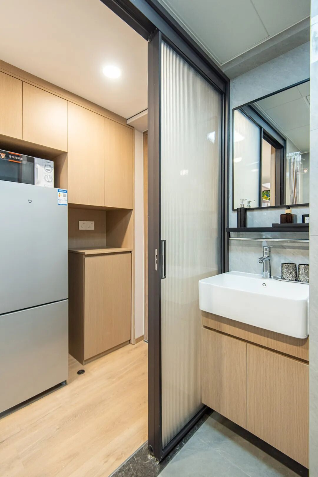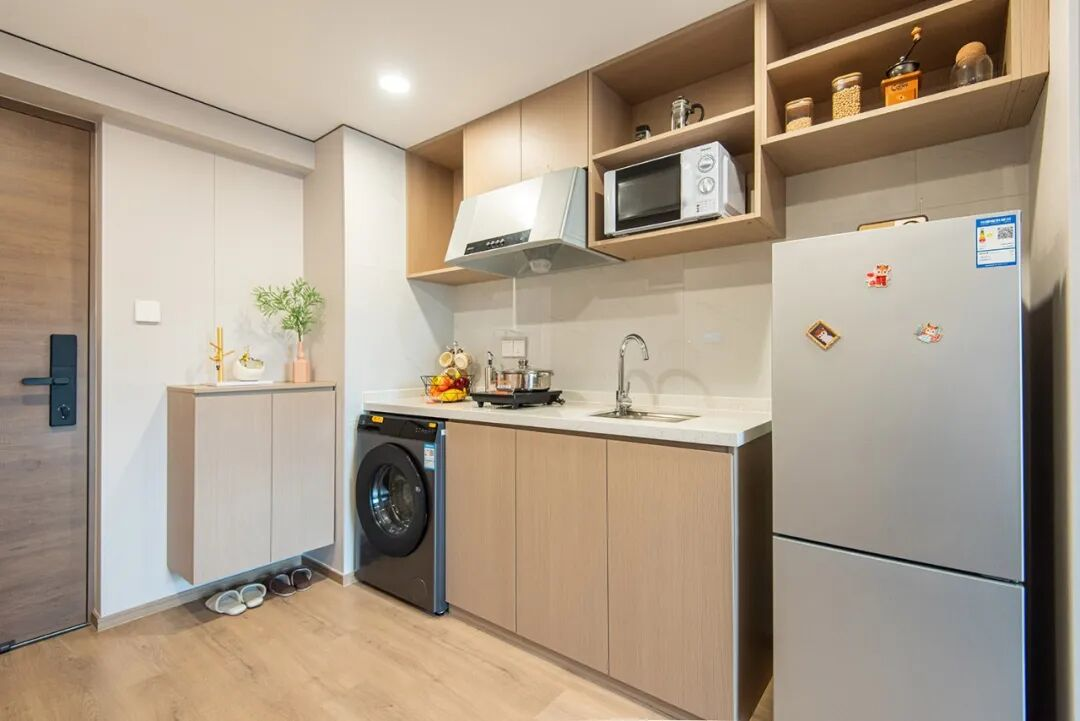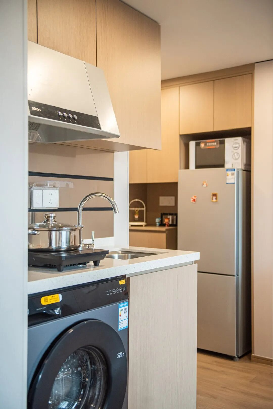 间隔式户型,拥有相对独立的餐厨空间,对于喜欢做菜的租户来说,更是上选。大容量冰箱,是能量补给站;早上面包机里弹跳出的松软,深夜一窝汤粥传递的温暖,平日里自创料理带来的快乐,都是在城市里迎头奋斗的小确幸。