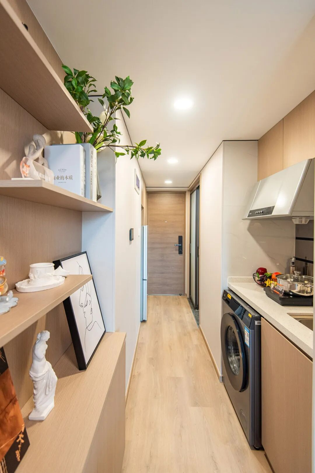 洗衣机则统一换成了10KG的大容量滚筒式,而且全都移到了厨房台面下,由此卫生间的尺度与舒适度明显升级,布局也变得更加合理。