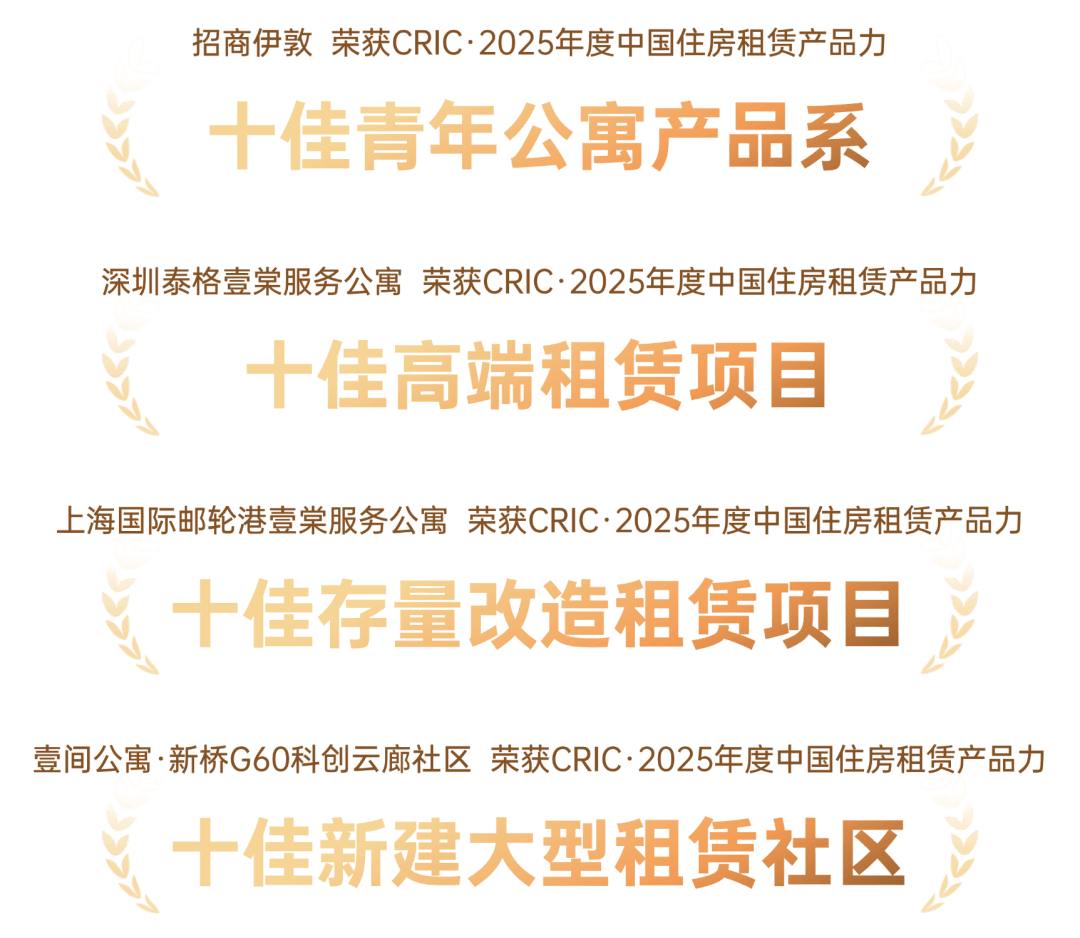 喜讯!招商蛇口招商伊敦斩获CRIC“2025年度中国住房租赁产品力·十佳青年公寓产品系”等多项荣誉