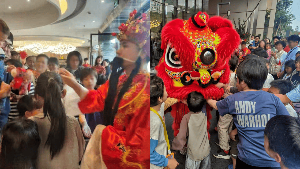招商蛇口旗下深圳东门壹棠举办迎财神舞狮活动,派发糖果红包,为住客提供特别的新年体验