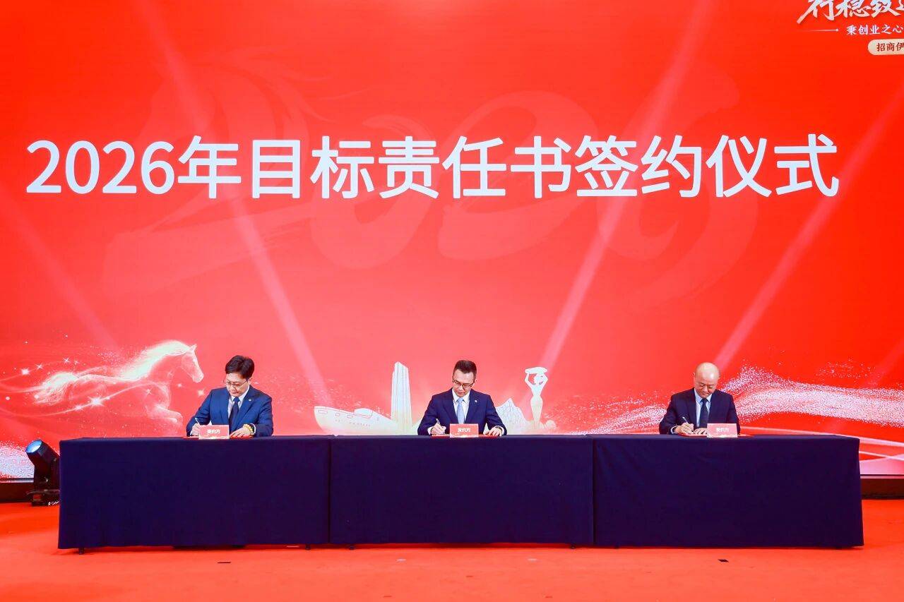 会上举行了2026年经营管理目标责任书签约仪式,招商蛇口招商伊敦总经理李杰与招商伊敦各部门签订目标责任书。一纸责任书既是层层压实的“军令状”,更是携手前行的“路线图”,明确了新一年的奋斗目标,凝聚起全员攻坚克难的责任与担当。