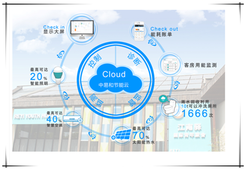 中易和节能公司将节能云平台与物联网技术融合,集成了可再生能源系统、能源监管系统、节能优化控制系统,这些系统可对能源的使用情况进行实时测量、数据分析,根据分析结果对能耗进行优化管理和自动控制。在对于能耗最大的空调和暖通设备,也有相应的智能控制系统进行综合监管和优化控制。