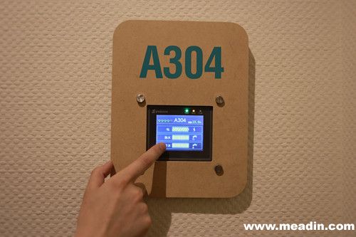 2、 在每个房间门口皆有能耗显示屏,可以用于展示房间的热水、冷水和用电的能耗使用情况,以便提醒客人在居住的过程中注意自己的碳排放;