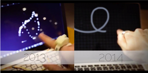 更加值得注意的是,用户还可以通过Ring书写发送一些短消息(应该只支持英文)。开发者为此特地制作了一些简单的字体,便于使用者在空气中书写。