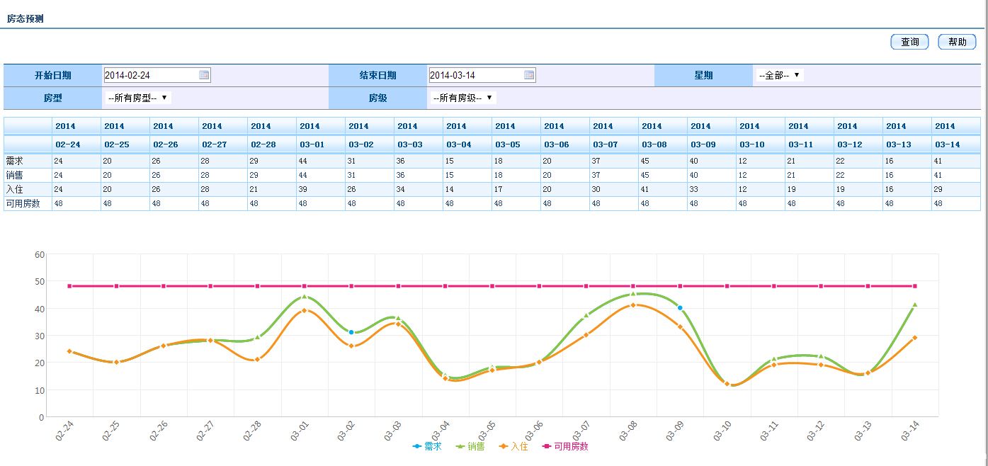 预测功能:对未来的订房数和入住数作精准预测,并在此基础上提供定价策略,使得决策者先知先觉,变“追随市场”为“引导市场”。