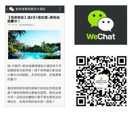 新加坡香格里拉大酒店成为新加坡第一个与微信合作的酒店,建立了公众号ShangrilaSG。该合作目的主要在于吸引越来越依赖微信的亚洲游客尤其是大中华区的游客。作为全球成长最快的社交应用,微信极大地改变了人们的联系和沟通方式。为了庆祝此项全新的合作,酒店推出了“分享赢大奖”的活动,以奖励在社交媒体上分享该合作消息的广大粉丝。