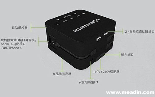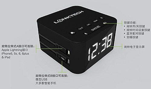 LINKTECH智能充电设备/闹钟采用高端通用充电系统,内置多条充电线,为您的多个移动设备安心续航。