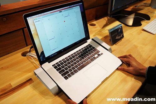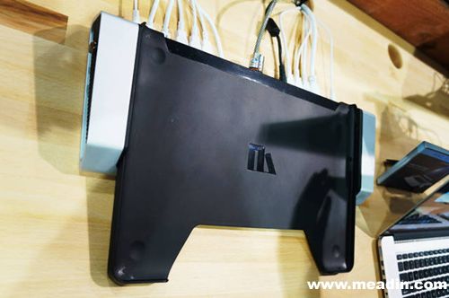 售价399美刀的MACBOOK底座,底座背部有14个接口可以满足你的各种数据拓展功能,使用右边的按键接入、取出电脑。此外还有防盗功能,可以软件设置上锁,避免一些逗比按下按键取走你的电脑。