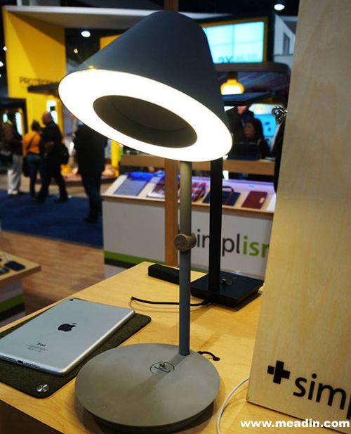 日本品牌simplism 展台,满眼原木装饰,有着相当清新文艺风,现场展有多款Lifestyle的数码产品。此款自带DOCK的桌面音箱灯,有着日本设计典型的儒雅极简造型。甚至设计了自带磁扣的羊毛毡桌垫和鼠标垫,方便你在办公室的时候把自己的手机平板置于其上,不会磕碰桌面,数据线可以吸附在磁扣上免得到处找线头,本设计对细节的极致追求可见一斑。