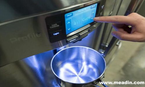 冰箱内置式饮水机这个附加功能已经屡见不鲜,然而传统的冰箱饮水机基本上仅提供冰水,这对于喜欢泡茶或是咖啡的用户来说就有点美中不足。通用电气则扩展了这项功能,使得冰箱可以加热水源,进一步满足用户的多样化需求。通过触摸屏,用户可以设定一个标准给水量,再选择精确的服务范围。