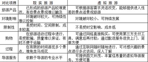 虚拟旅游包括了多维信息空间,具有沉浸性、交互性、构想性、超时空性、经济型、高技术性等特点,不受时间、空间、经济条件、环境条件的限制,可以满足更多游客的游览和审美需求。