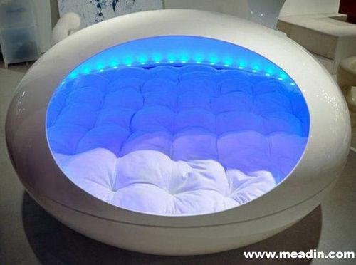 Hammacher Schlemmer公司推出了一款让人想想都能全身放松的智能床The Tranquility Pod。床上的LED灯以及音箱装置能够同步使用者的心跳,使灯光和声音变化的频率和心跳一致。