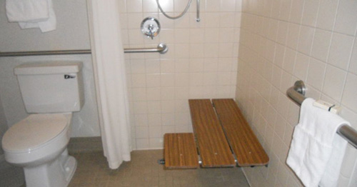 高星级酒店基本都会有残障人士专用客房,其设计和大小和普通客房区别不是很大。最大的区别在于卫生间和客房的地面。客房的地面不能设计光滑,因为一般残障人士会拿着拐杖或者轮椅,光滑的地面较为容易摔跤,特别是卫生间里一定不能设计的光滑。