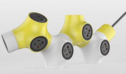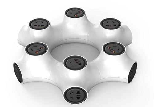 其中“小象”的外形酷似大象鼻子,是一种采用模块化设计的三向插座,每一个“小象”拥有三个插入端、一个插口端。由于具备60度的夹角,六个“小象”即可组成一个多达12接口的环形插排。