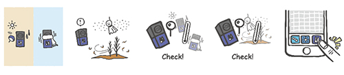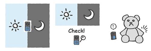 通过周围的温湿度变化来使用开关,温度和湿度变化时通过标签对应用转达。比如,夜晚住客把房间温湿度设置在一定值上,空调会因为客房温湿度变化自动开关。