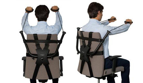 OfficeGym是一套专门为商务男士量身定制的健身用品,它有两对尼龙扣带,使用者可以直接将其安装在任何一张座椅的背部,两个拉手及弹性系统可以让你完成各种抗阻的全身训练,无论是胸部,还是肩膀,手臂,背部,腹部或腿部,它都可以一次性满足你。如果酒店能够在客房中加入这款产品,相信没有健身房也能俘获不少男性粉丝!