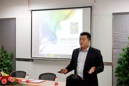 (图为尚俭太空舱总经理崔红波先生讲解《睡机场》项目)