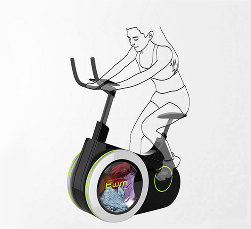 b.w.m的全称为bike washing machine,是一款兼具洗衣功能的自行车,它在主体的前端部分设计了滚筒洗衣空间,并将洗衣机的滚轴与自行车的脚蹬相连,这样用户就能够一边骑着自行车一边把衣服给洗了,而且我们还可以根据衣服的件数和注入的水量来调整锻炼的难度,听上去是不是很有挑战性?