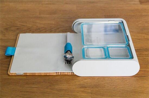 另外,餐盒内部用了磁铁设计,无论是刀叉还是其他餐具都能牢固地吸附在内置的餐垫上。每个模块小保险盒都是防渗漏的,不含BPA,还有一定的保温功能。