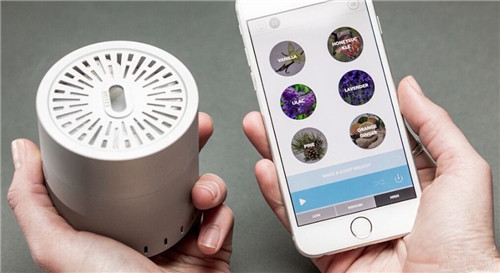 之所以称其为“气味扬声器”,是因为这款产品能够通过IPhone应用来“播放”大自然中的独特气味。例如在客房内,用户可以通过自己的需要“播放”各种清新的气味(产品内置番石榴、薰衣草、柑橘姜、香草、菠萝、薄荷等12种气味)以此来调节浮躁、不安等情绪,让自己慢慢进入放空的平静状态。
